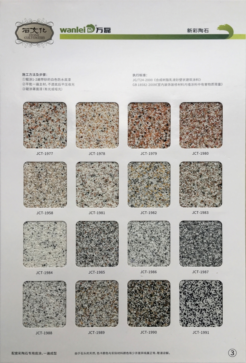 彩陶石具有經(jīng)典的意大利風格,多種色彩融為一體,粗狂不失細膩、堅實不易磨損,突破傳統(tǒng)漆色彩單一。